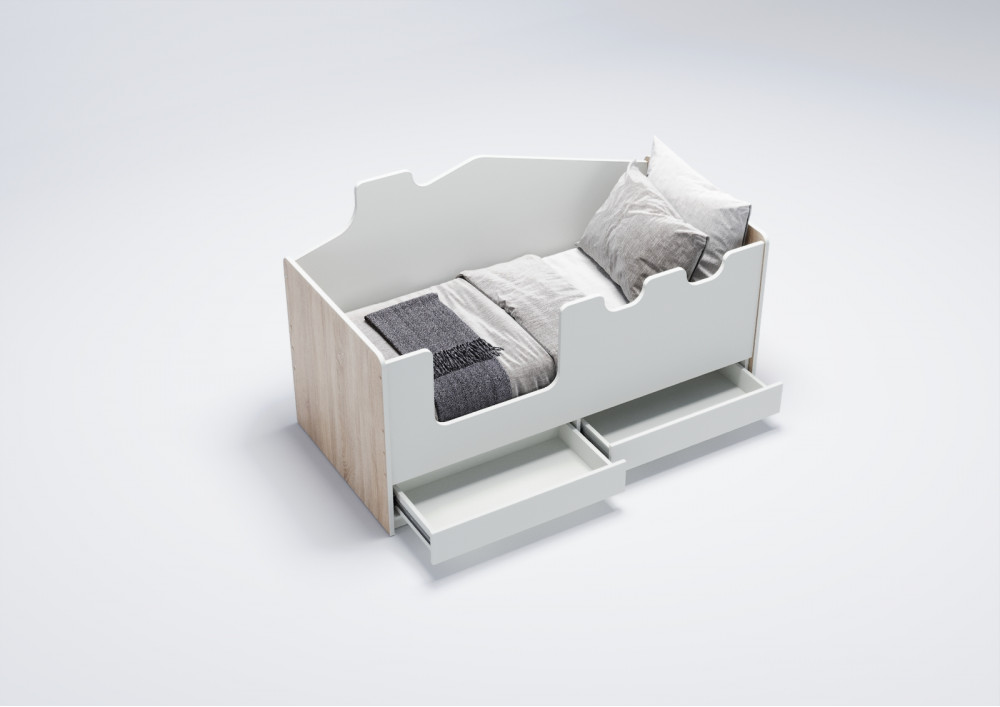 Безопасность ребенка во время сна и игр - это основное внимание при создании данной кровати. Высокие безопасные борта высотой 521 мм обеспечивают надежную защиту от падений, а отсутствие острых углов и мягкий противоударный кант увеличивают безопасность использования. Стилизованный под домик задний борт создает атмосферу игры и фантазии, стимулируя развитие детского воображения.